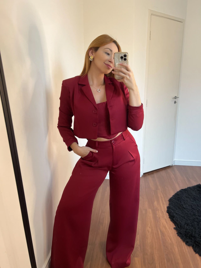 Todo de Alfaiataria da melhor qualidade, mais curtinho para dar um charme e ficar mais estiloso, alem de ser um dos grandes hits para esse inverno.