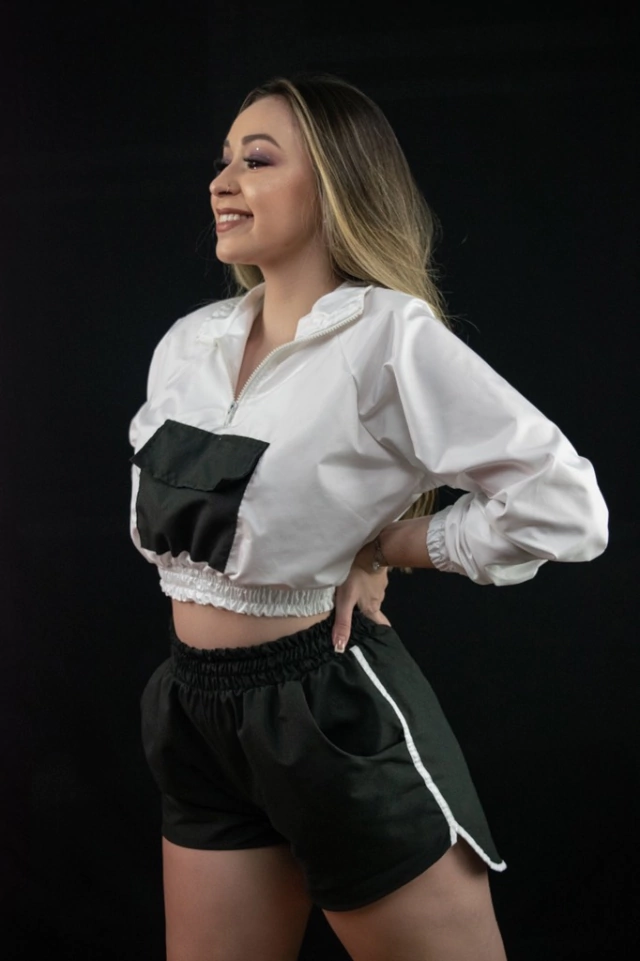 Cropped estilo corta vento, mega estiloso e super confortável! Tecido estilo impermeável, não é fino e fica ótimo para looks mais despojados e para quem está procurando peças mais estilosas.
