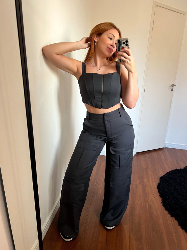 Cropped de Alfaitaria , super estruturado absurda qualidade! Corte reto, com zíper na frente podendo ser usado aberto se você preferir.