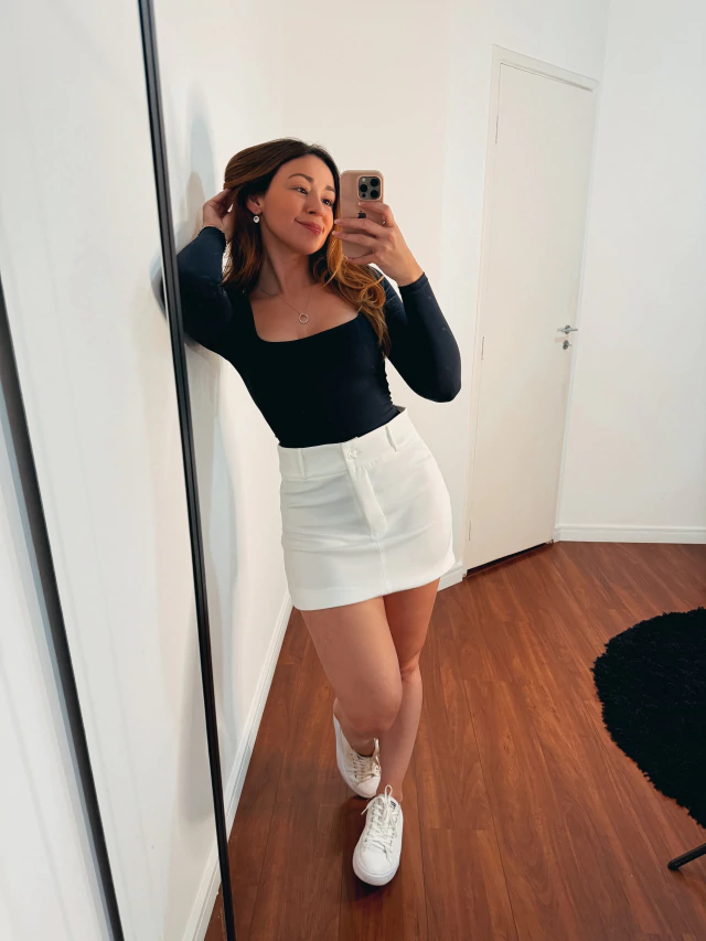 A saia mais pedida finalmente chegou! Perfeita pra usarmos em TODOS os looks! Toda de Alfaitaria Barbie, caimento perfeito, cintura alta com botão elegante, forro por baixo tipo shorts para ficar mais confortável.