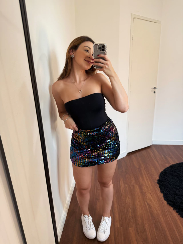 A saia de Paete perfeita finalmente voltou, nesse tecido maravilhoso especial carnaval! Paetê de escama , super diferenciado ( paetê de rica) e que você vai poder usar depois, em toda festa que quiser apostar em um brilho.